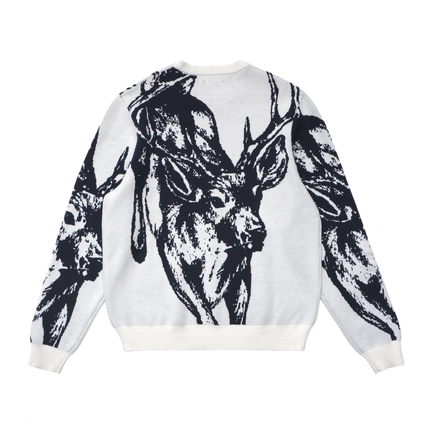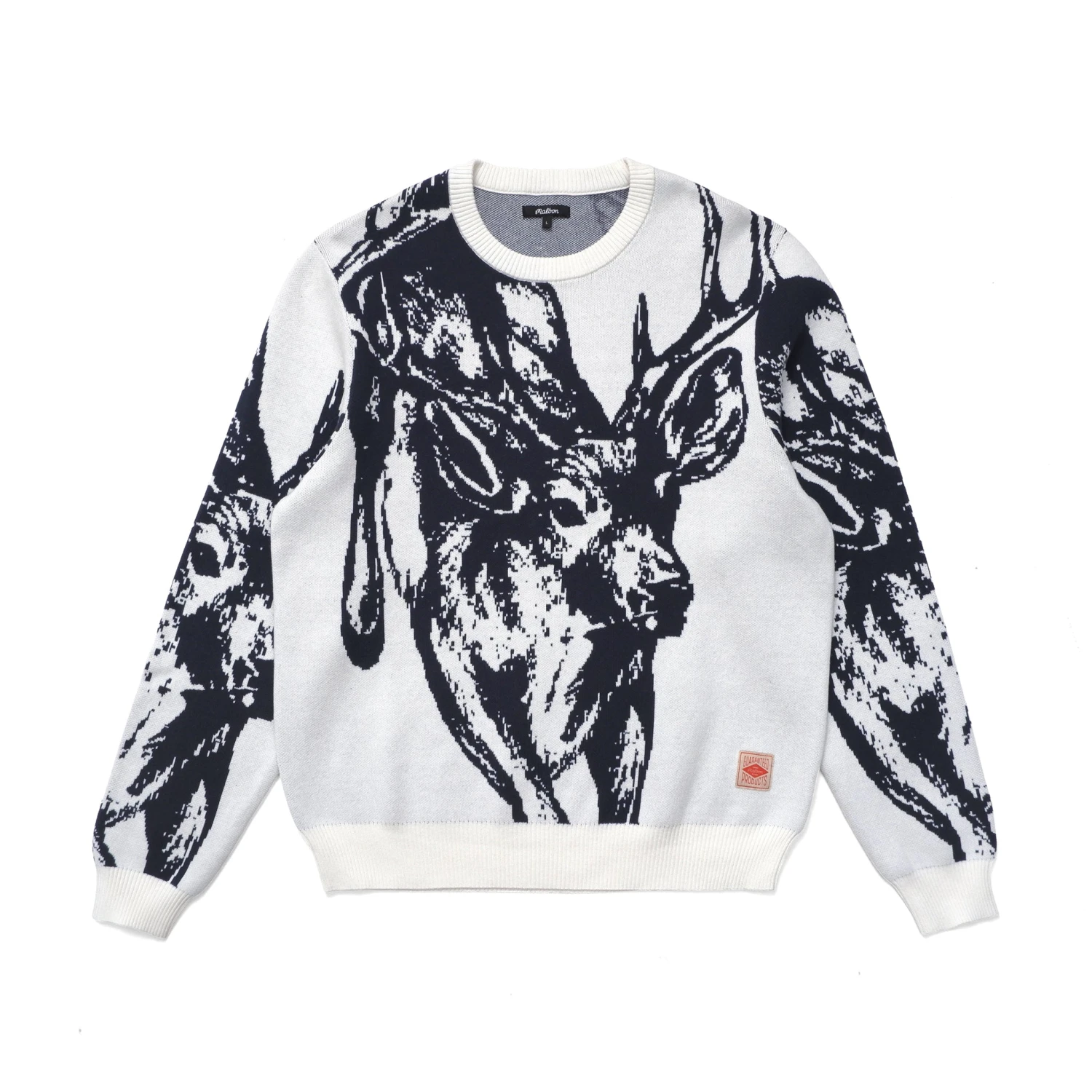 Casper Intarsia Knit Sweater in Midweight Knit with Intarsia + Woven Label Embellishments.