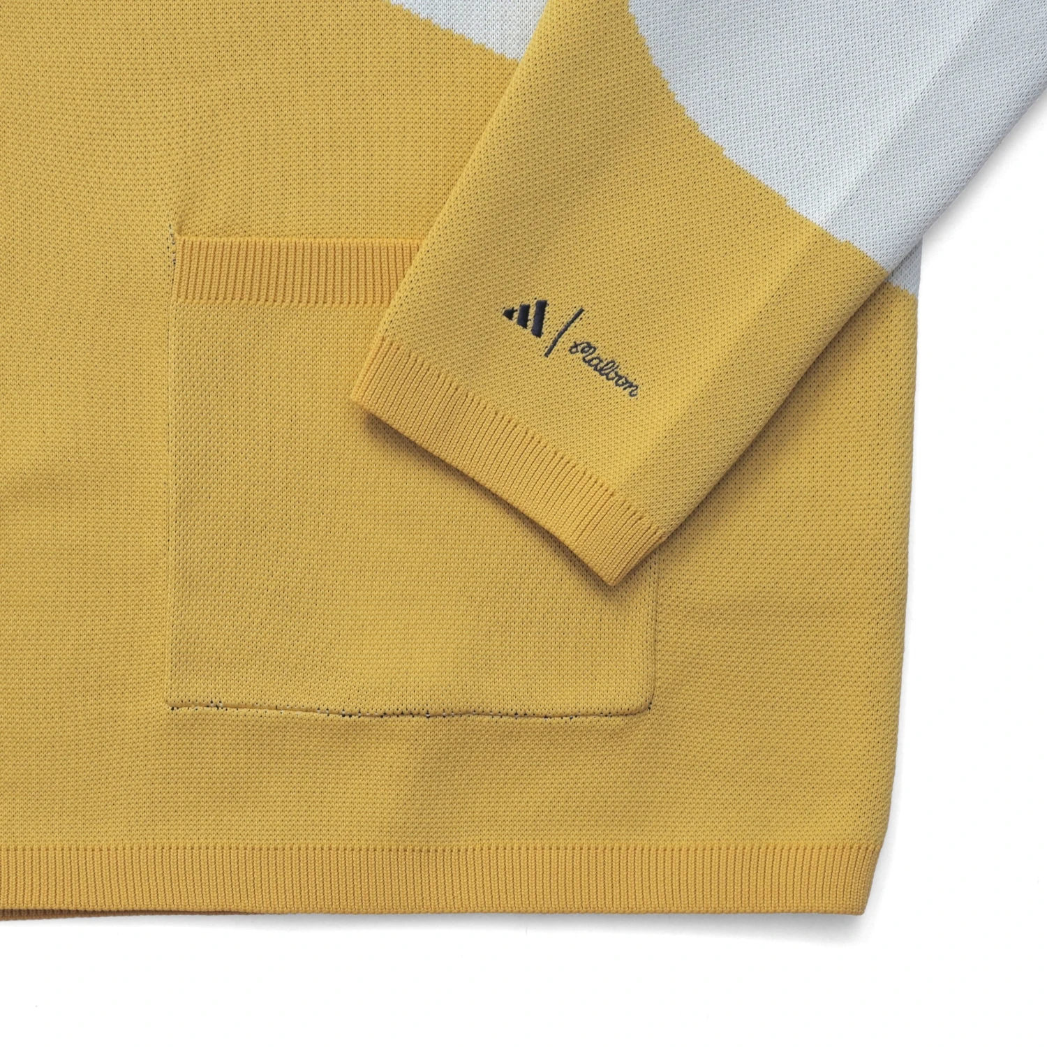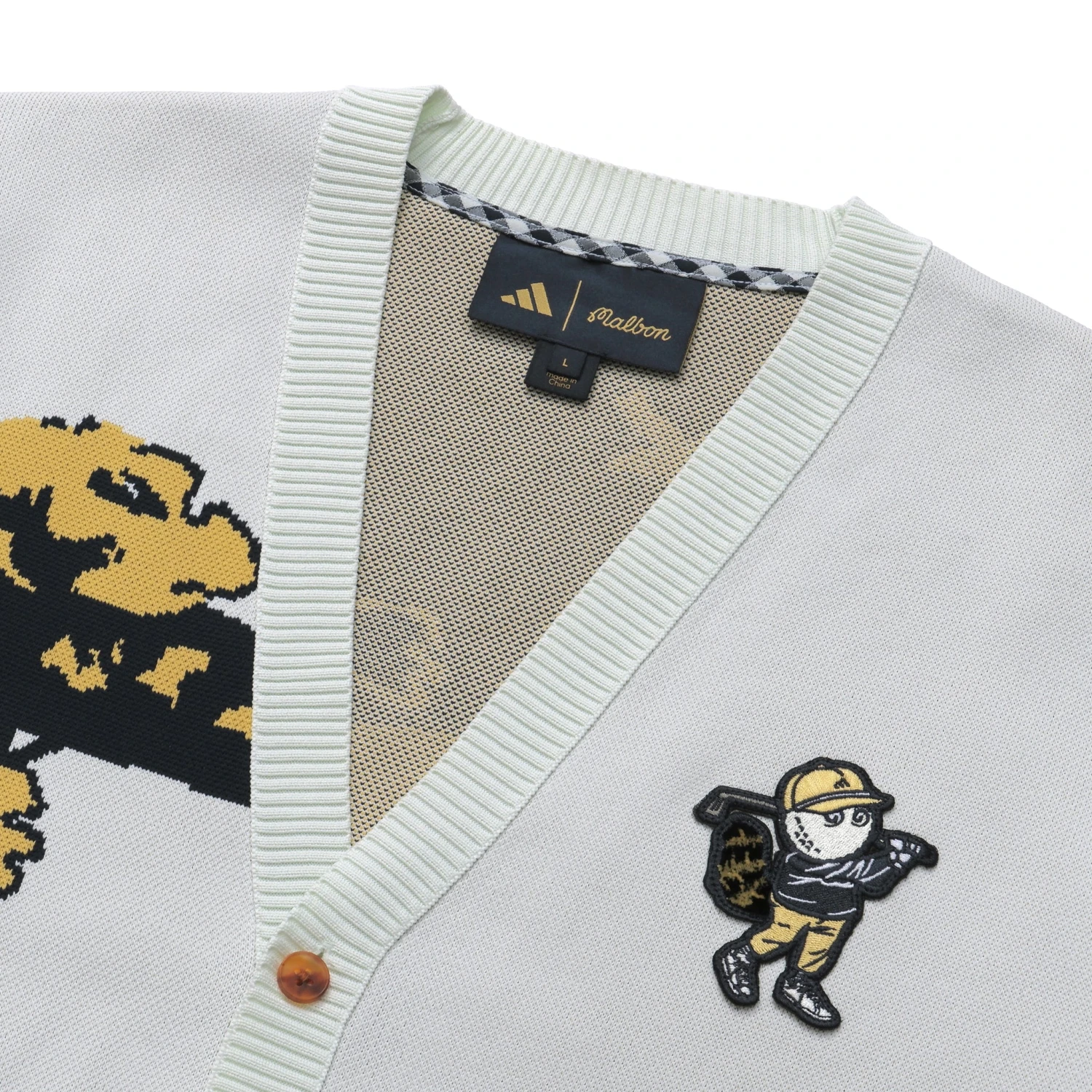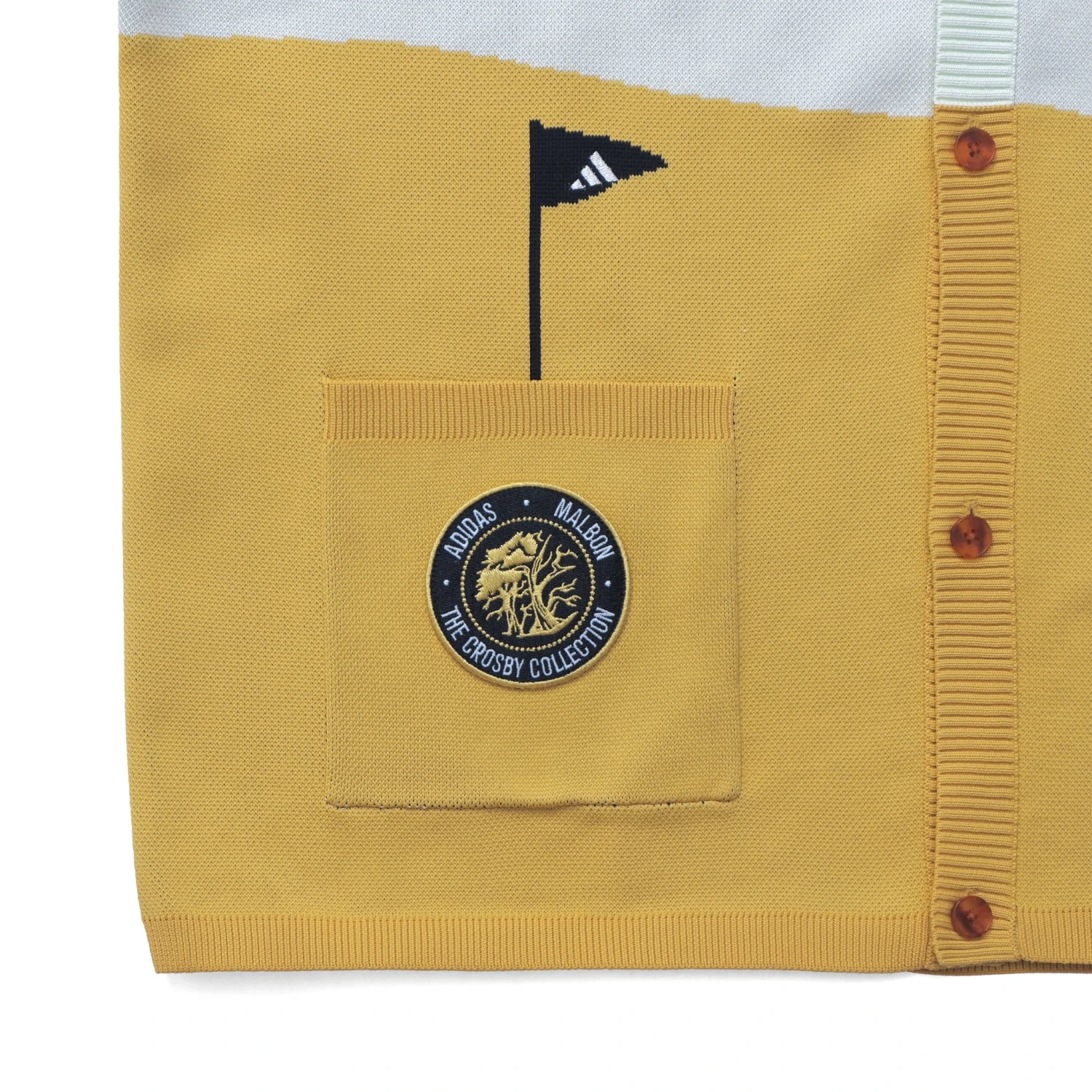 Course or clubhouse, this golf cardigan sweater brings a playful and vintage feel to any golf uniform. It features a signature Malbon “Buckets” patch on the left chest and an adidas, Malbon and Bing Crosby patch on the front right pocket and graphics on the back. adidas Primeknit lends it a performance feel, so you are always ready to play your best and relax with ease.