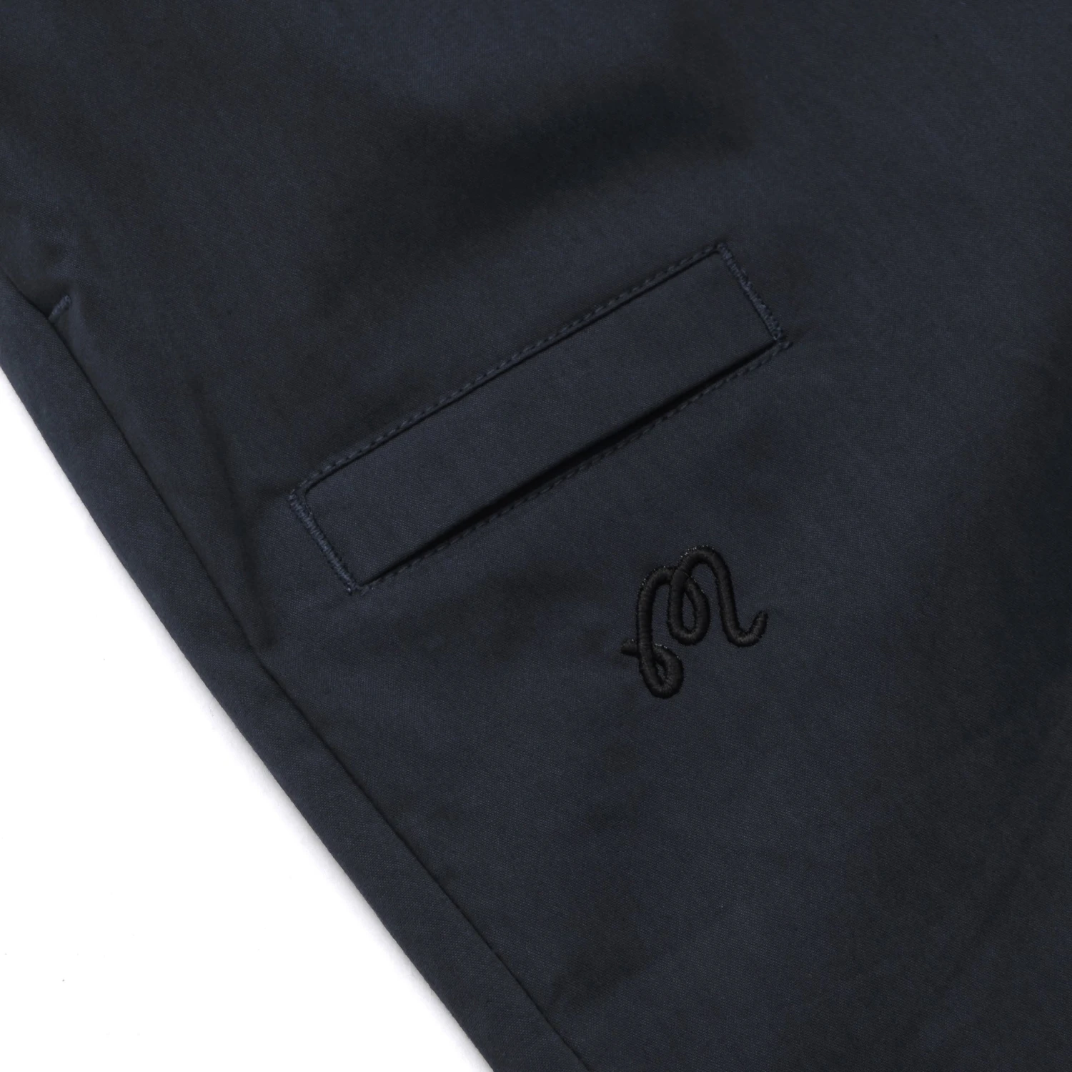 - M Script Embroidered on Right Thigh below Pocket Opening