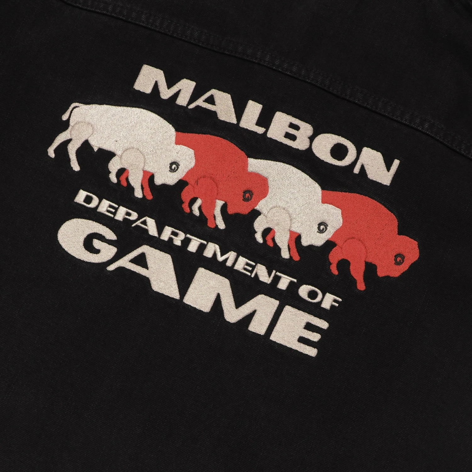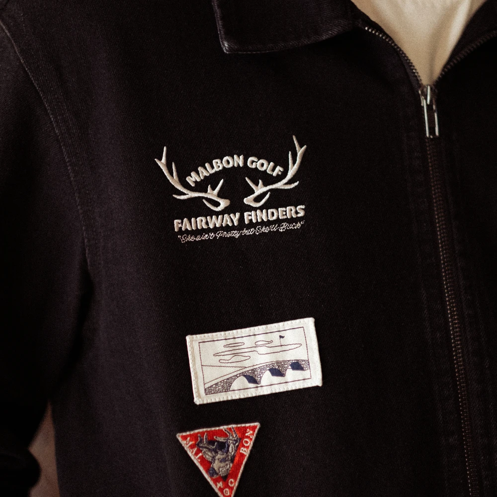 - Malbon Logo Embroidery, Woven Labels and Merrowed Edge Patches Throughout