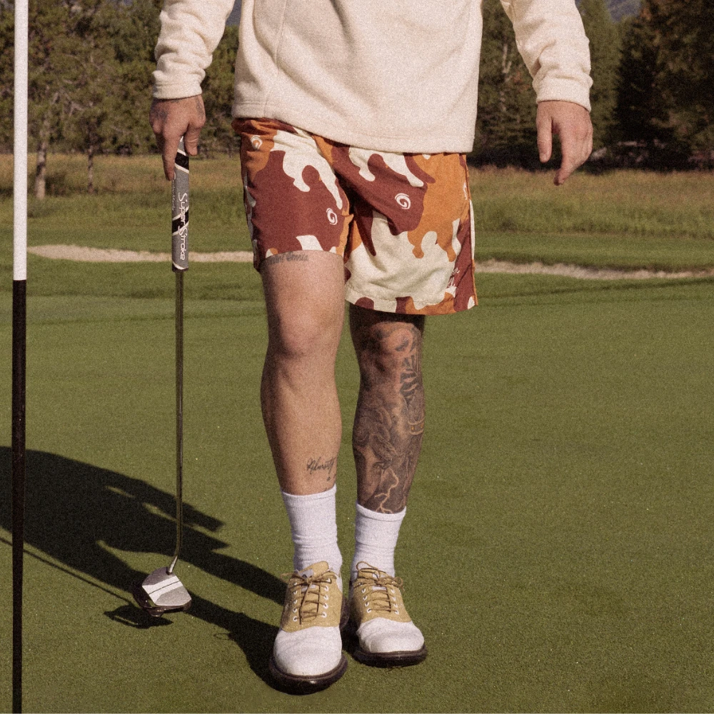 - Malbon Golf Script Screenprinted on Left Leg Above Hem
